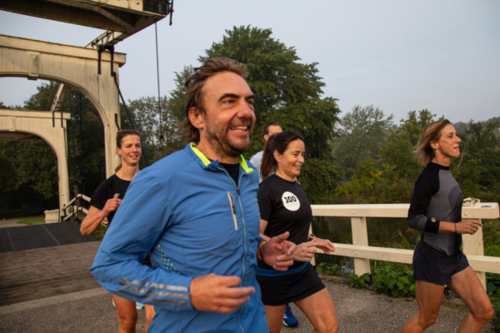 Koen (1979) loopt hard, ademt rustig en doucht koud. Hij is oprichter van Sportrusten en liep tussen 2014 en 2023 acht keer een marathon met het 14-kilometerschema.